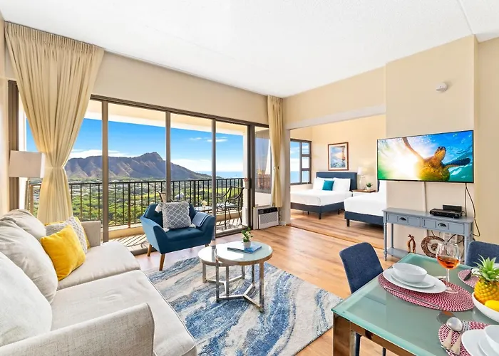 56m²のホノルルUpscale Penthouse With Ocean Views & Free Parking!アパートメントはアトランティス・ サブマリンから徒歩で25分で、クヒオ ビーチからたった0.6キロメートルの場所にあります。 プライベートなプールを提供するホテルは、ホノルル動物園すぐ近くです。